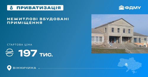 The State Property Fund has announced an online auction for the privatization of built-in premises with a total area of 152.9 m² in Vinnytsia Oblast. The auction will take place on the Prozorro.Sales trading platform.