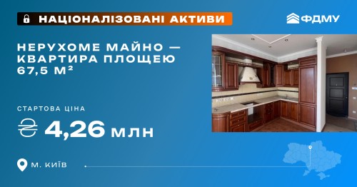 Оголошено аукціон з продажу нерухомого майна площею 67,5 м² в місті Київ