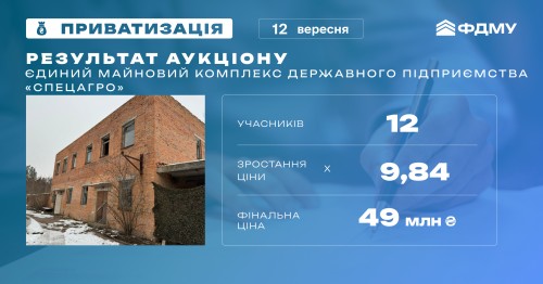 Більше пропозицій приватизації держмайна від ФДМУ можна знайти на https://privatization.gov.ua та Telegram каналі «Приватизація в Україні».