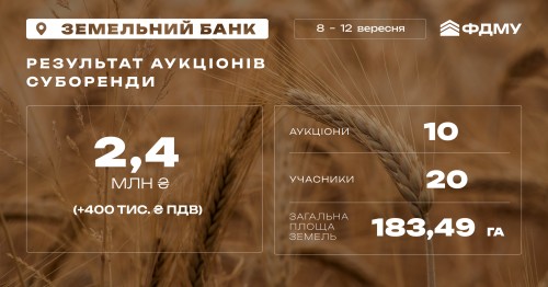 2,4 млн гривень (+400 тис. грн ПДВ) – результати торгів «Земельного банку» цього тижня