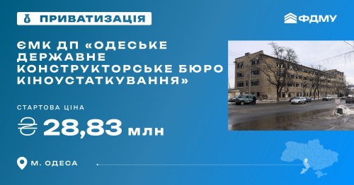 Команда Фонду державного майна України оголосила онлайн-аукціон з приватизації «Одеське державне конструкторське бюро кіноустаткування» в місті Одеса. Торги відбудуться у торговій системі «Прозорро.Продажі».