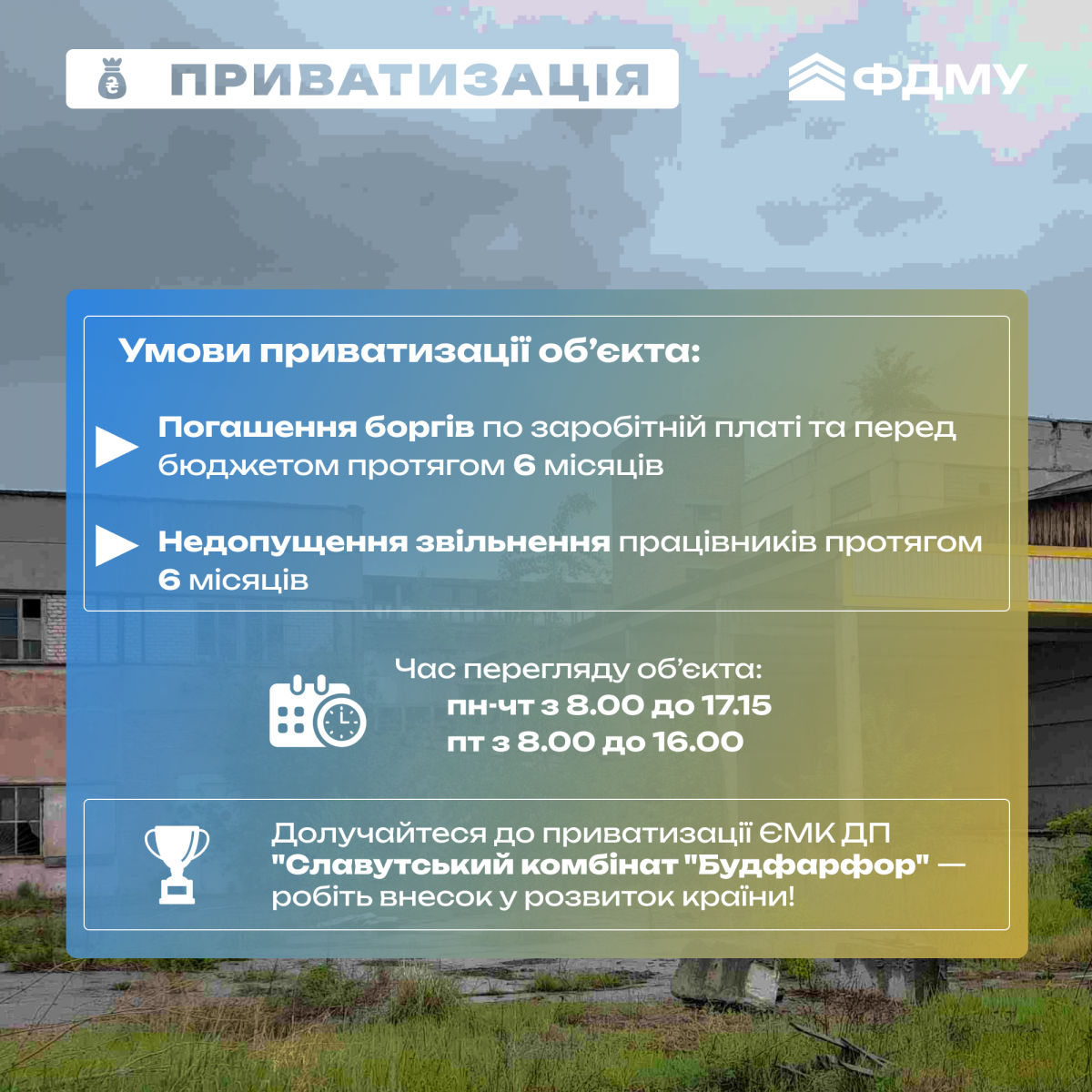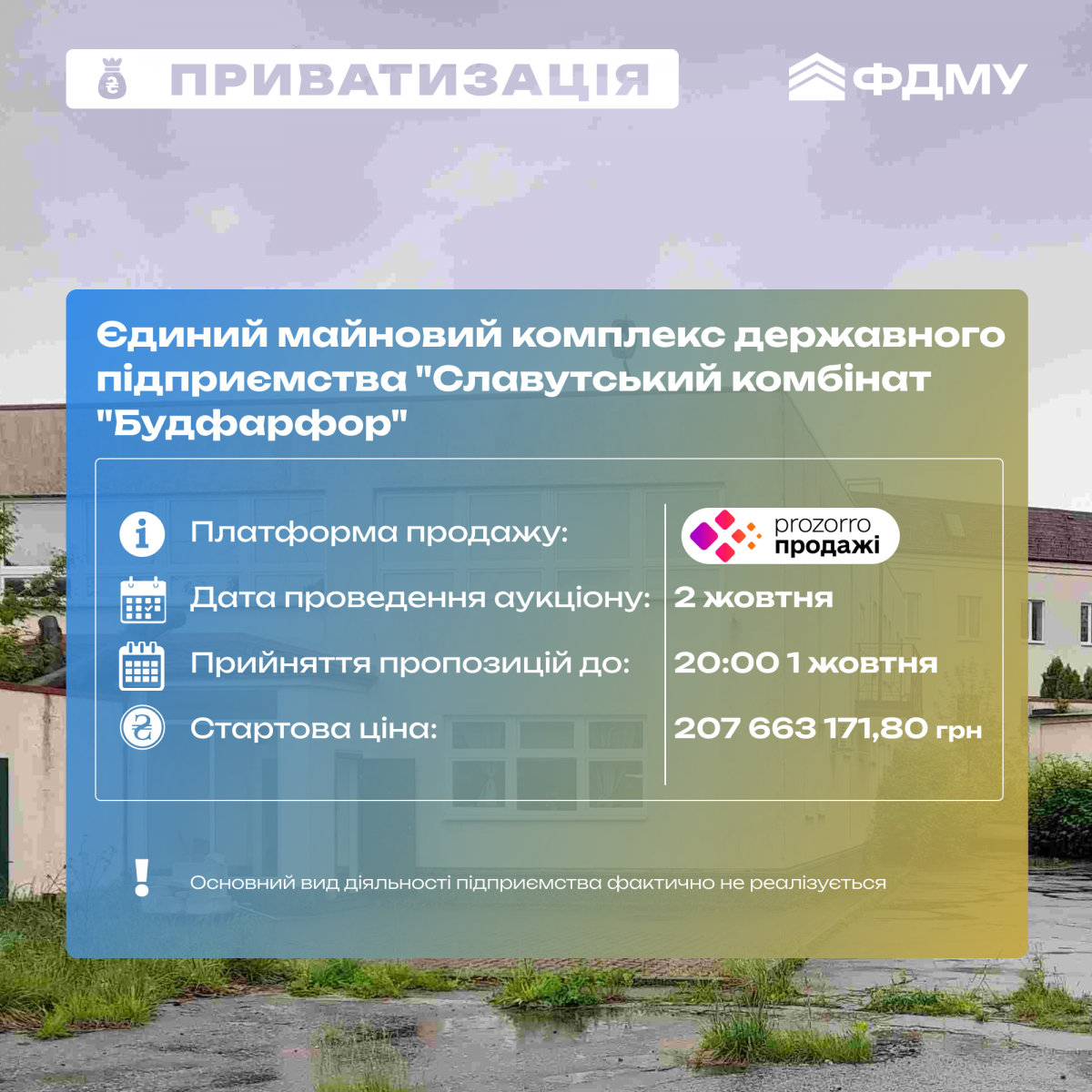 Шанс для вашого бізнесу: приватизація «Славутський комбінат «Будфарфор»