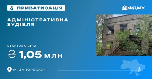 Фонд державного майна України виставив на приватизацію адміністративну будівлю загальною площею 3 319,5 м² у місті Запоріжжя. Аукціон заплановано у системі «Прозорро.Продажі» на 20 жовтня, цінові пропозиції будуть прийматися до 19 жовтня, 20:00.