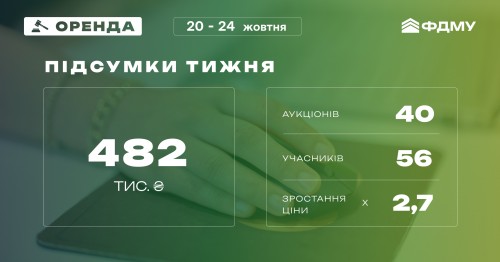 Понад 482 тис. гривень – результат минулого тижня на онлайн-торгах з оренди державного майна