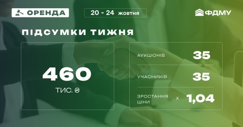 Команда Фонду держмайна минулого тижня провела 40 аукціонів з оренди державного майна, з них відбулося 35 на суму – 460 018 гривень.