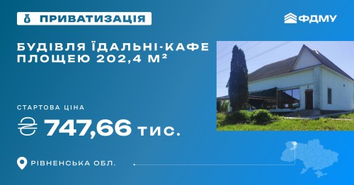 Оголошено аукціон з приватизації будівлі їдальні-кафе площею 202,4 м² на Рівненщині