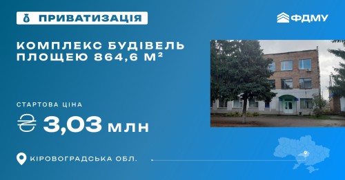 Оголошено аукціон з приватизації комплексу будівель загальною площею 864,6 м² на Кіровоградщині
