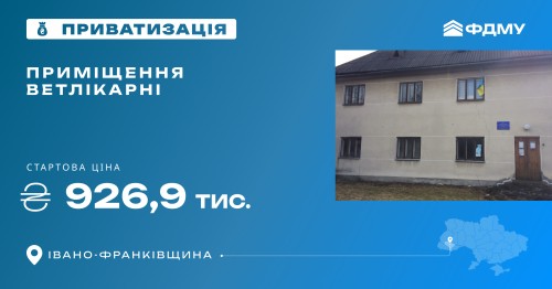 Фонд держмайна виставив на приватизацію приміщення лікарні ветеринарної медицини 137,7 м² на Івано-Франківщині. Аукціон відбудеться в електронній торговій системі «Прозорро.Продажі».