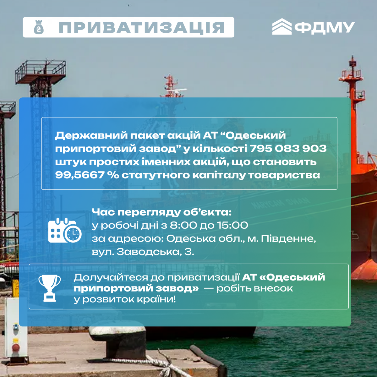 Приватизація державного пакета акцій розміром 99,5667 % статутного капіталу АТ "Одеський припортовий завод"