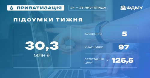 Підсумки приватизації минулого тижня: 5 аукціонів на суму – 30,31 млн гривень
