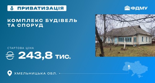Фонд держмайна виставив на приватизацію комплекс будівель та споруд на Хмельниччині загальною площею 207,6 м². Аукціон заплановано в електронній системі «Прозорро.Продажі».
