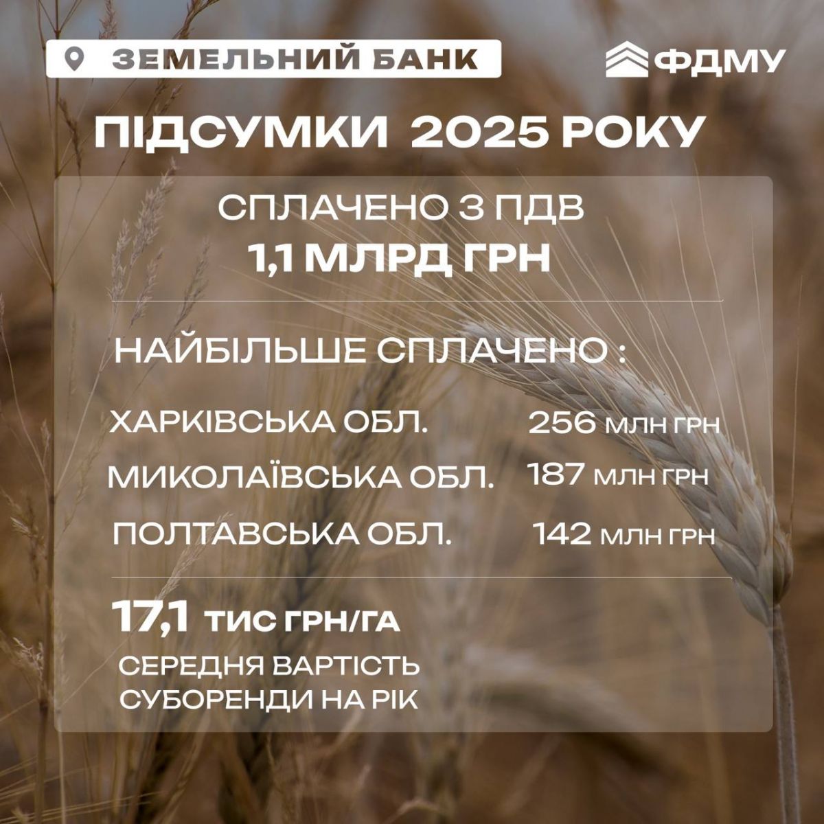 Земельний банк: Підсумки року — 1,1 млрд грн з ПДВ сплачено за користування державними с/г землями