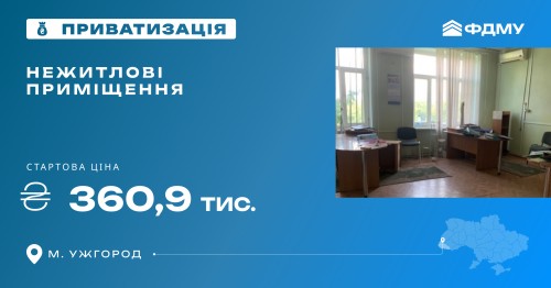 Фонд держмайна виставив на приватизацію нежитлові приміщення третього поверху загальною площею 558 м² в м. Ужгород. Аукціон відбудеться в електронній торговій системі «Прозорро.Продажі».
