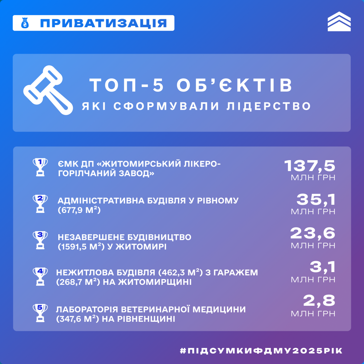 Ключові результати приватизації у 2025 році: