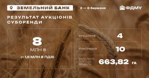 8 млн грн – результати торгів «Земельного банку» минулого тижня