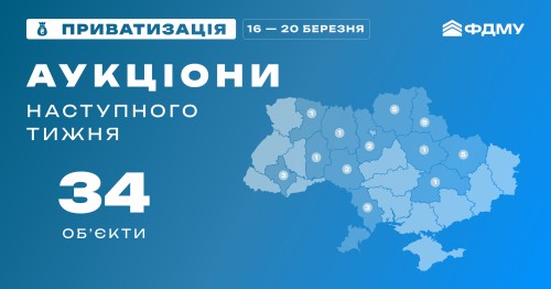З 16 по 20 березня Фонд державного майна України планує провести 34 онлайн-аукціони з приватизації державного майна.