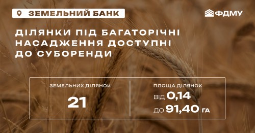 Ділянки «Земельного банку» під багаторічні насадження для суборенди