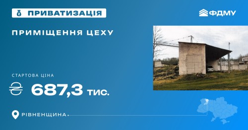 Фонд державного майна виставив на приватизацію приміщення цеху з переробки хвойно-вітамінної муки загальною площею 229,1 м², що розташоване у місті Костопіль Рівненської області. Торги відбудуться в електронній системі «Прозорро.Продажі».