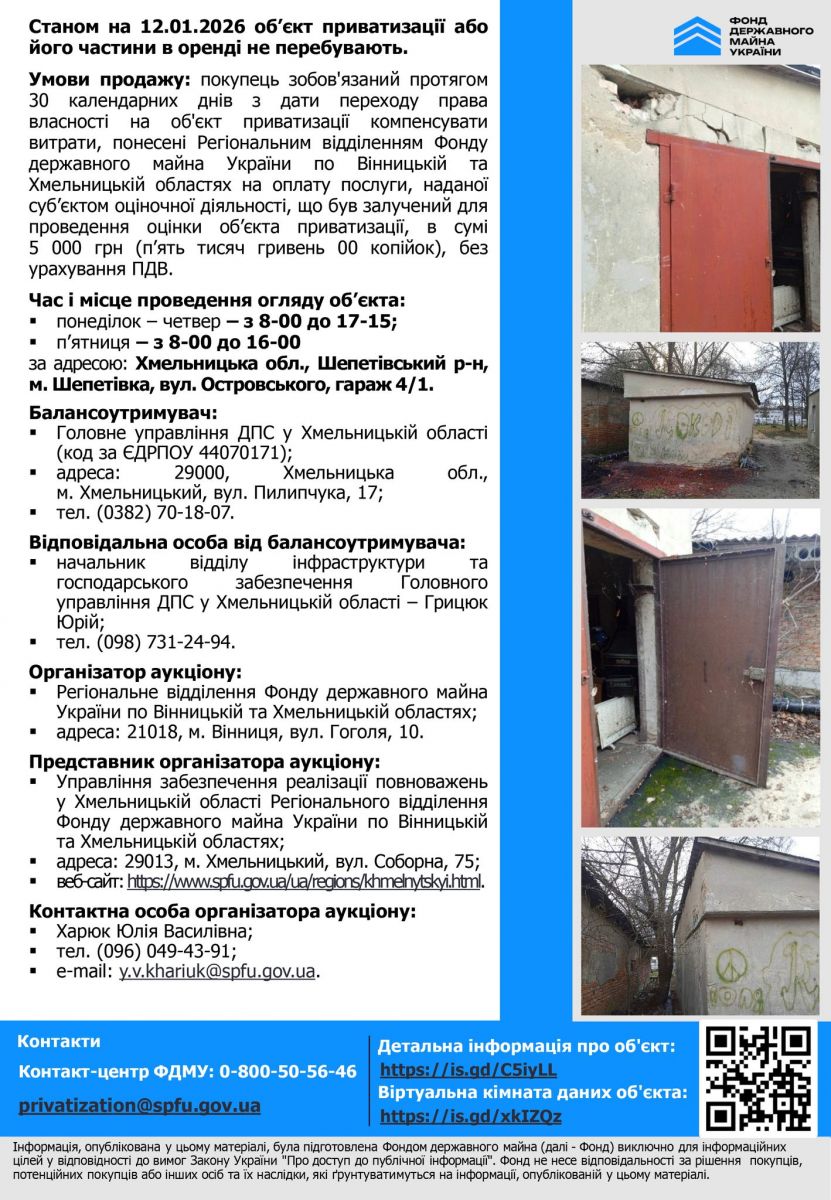 Гараж загальною площею 30,1 м² у місті Шепетівка – у продажу!